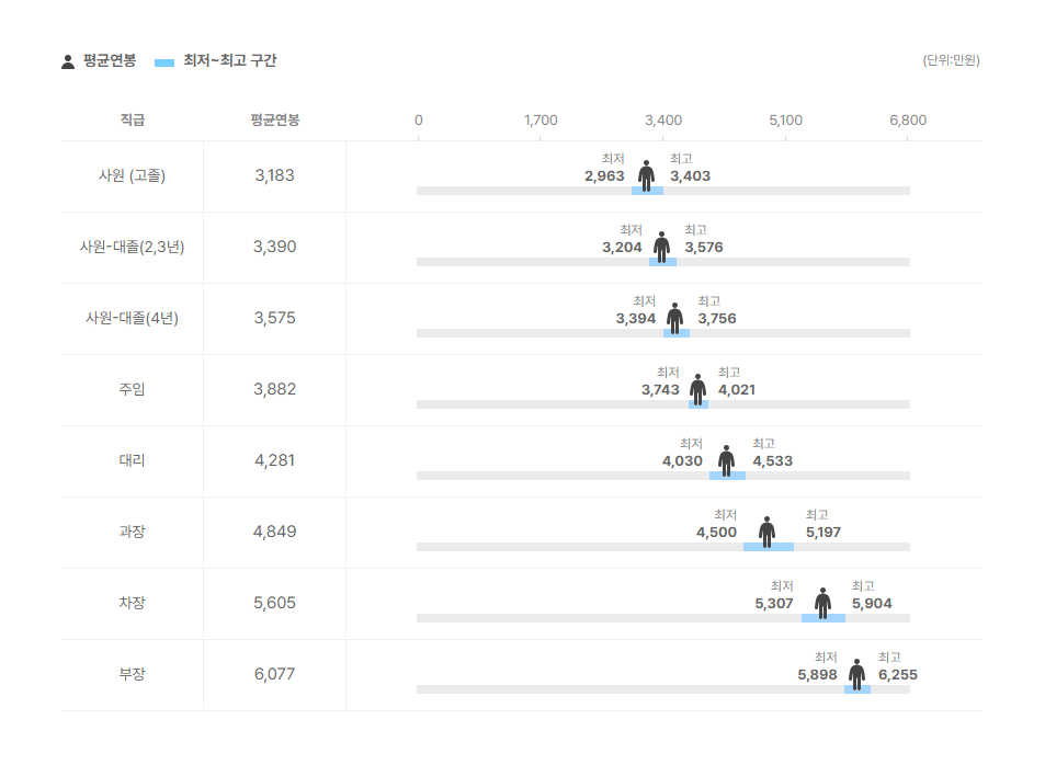 직급별 연봉 정보도 확인을 해보았는데요.