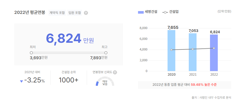 세명건설 대졸초임 초봉을 확인해보니 4,023만원으로 확인되었습니다.