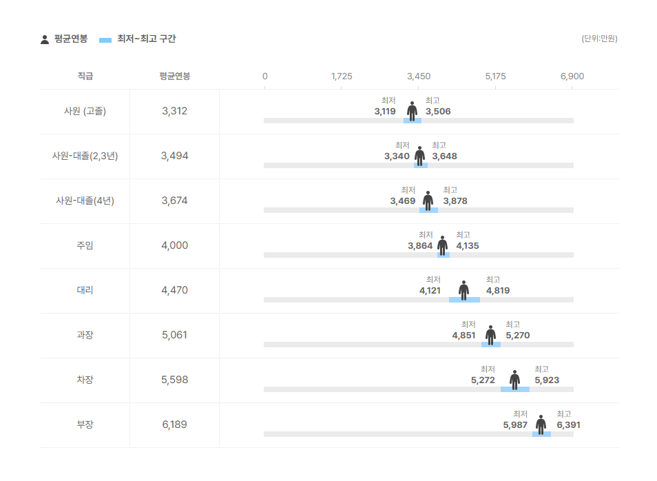 직급별 연봉 정보도 확인을 해보았는데요.