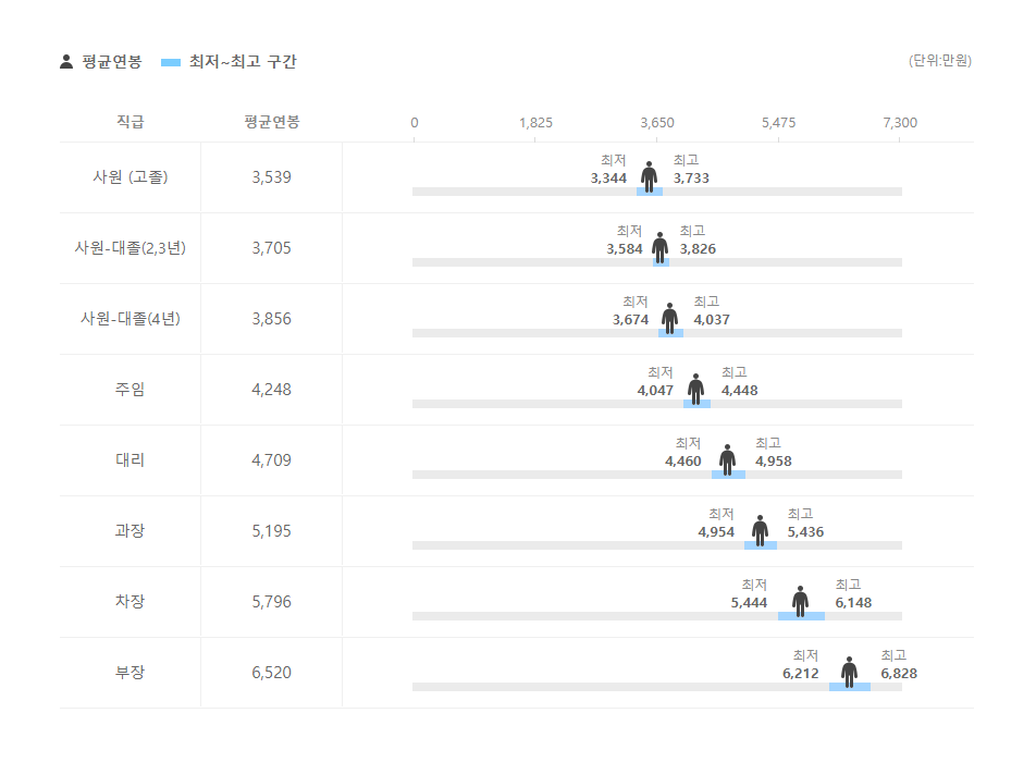 직급별 연봉 정보도 확인을 해보았는데요.