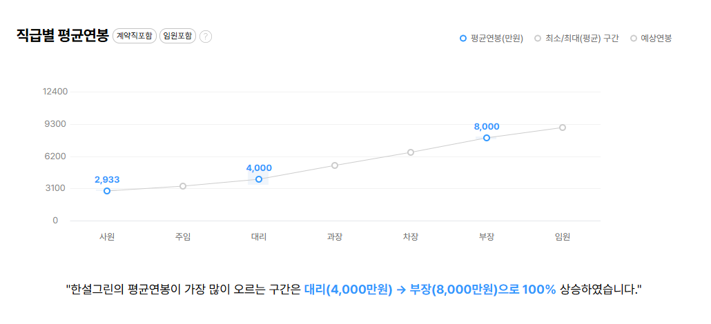 한설그린 직급별 연봉 (부장, 차장, 과장, 대리, 신입)