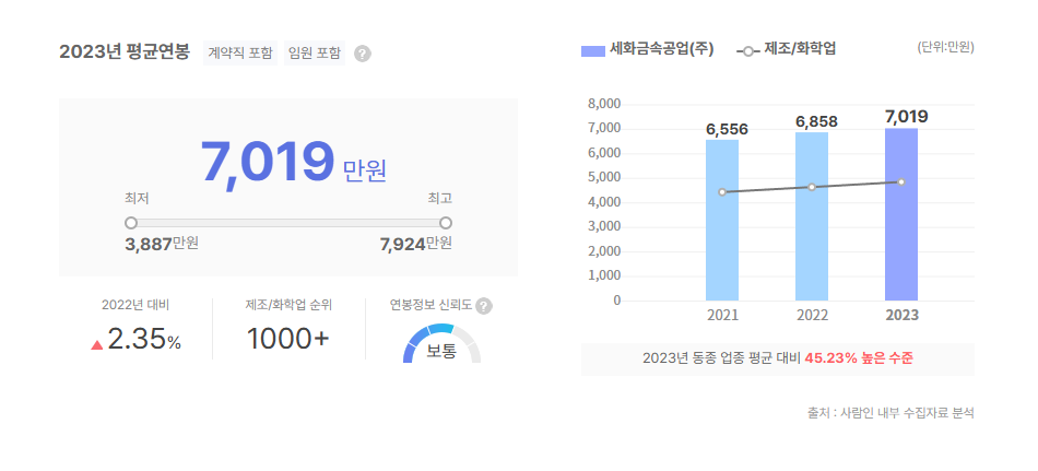 현재 취업 및 이직을 준비하시는 분들이나 세화금속공업 연봉, 초봉, 채용정보가 궁금하셨던 분들은