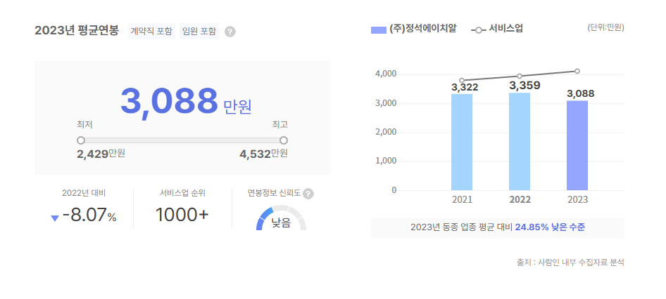 정석에이치알 연봉, 초봉 정보