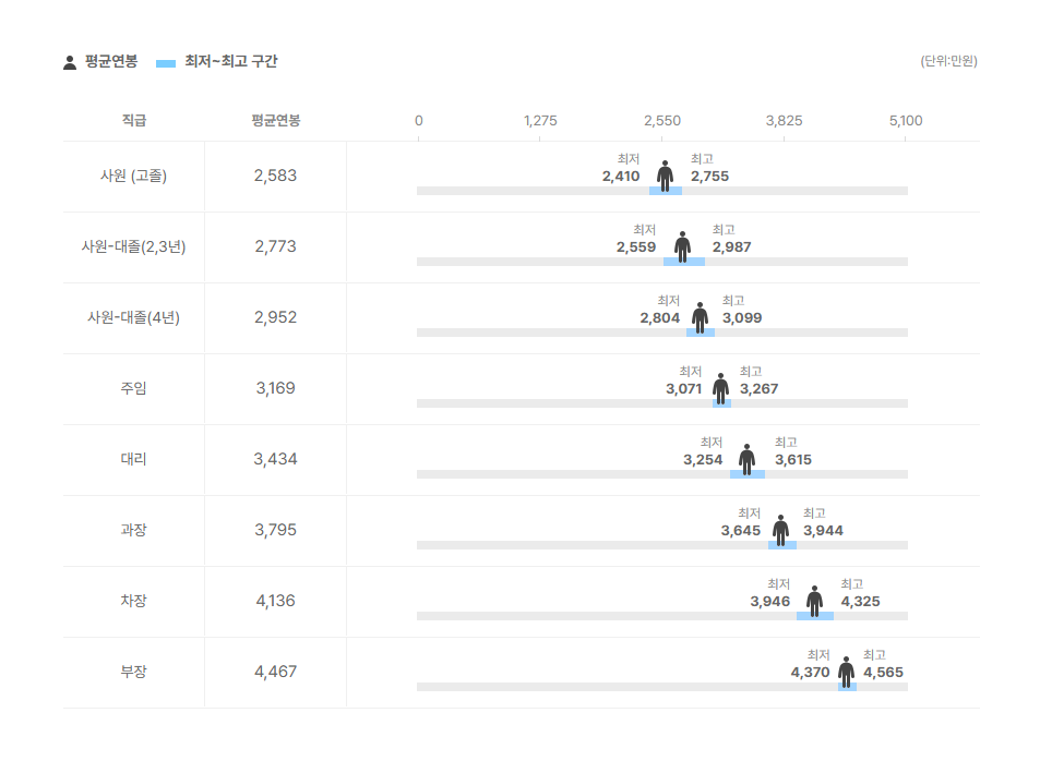 직급별 연봉 정보도 확인을 해보았는데요.