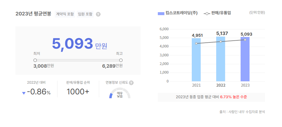 킴스코트레이딩 대졸초임 초봉을 확인해보니 3,476만원으로 확인되었습니다.