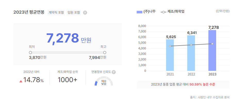 나무 대졸초임 초봉을 확인해보니 4,316만원으로 확인되었습니다.