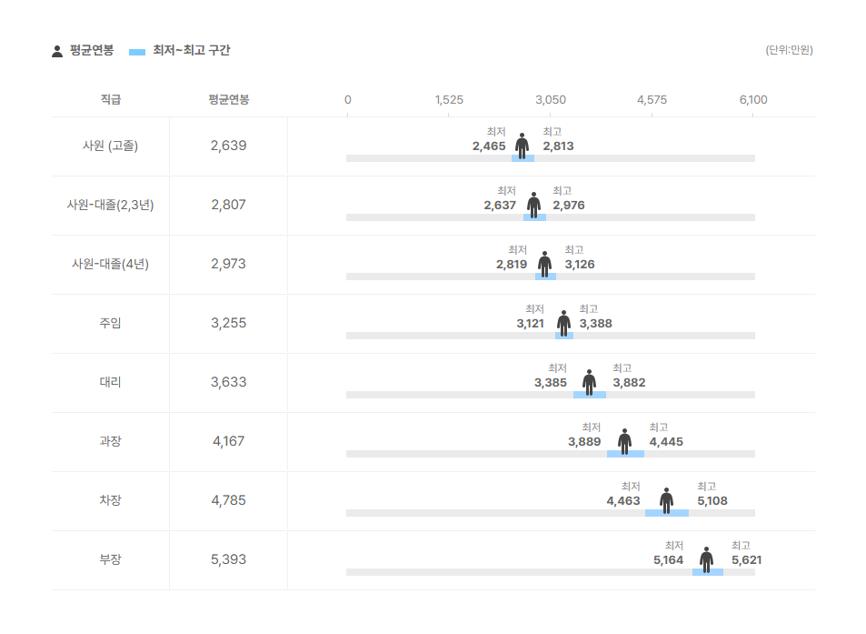 직급별 연봉 정보도 확인을 해보았는데요.
