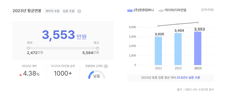 또한, 2022년 기준 전체 평균연봉은 3,553만원으로 이라고 하니 참고해주시기 바랍니다.