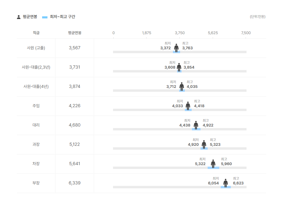직급별 연봉 정보도 확인을 해보았는데요.