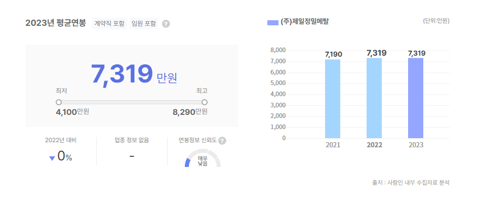 제일정밀메탈 직급별 연봉 (부장, 차장, 과장, 대리, 신입)