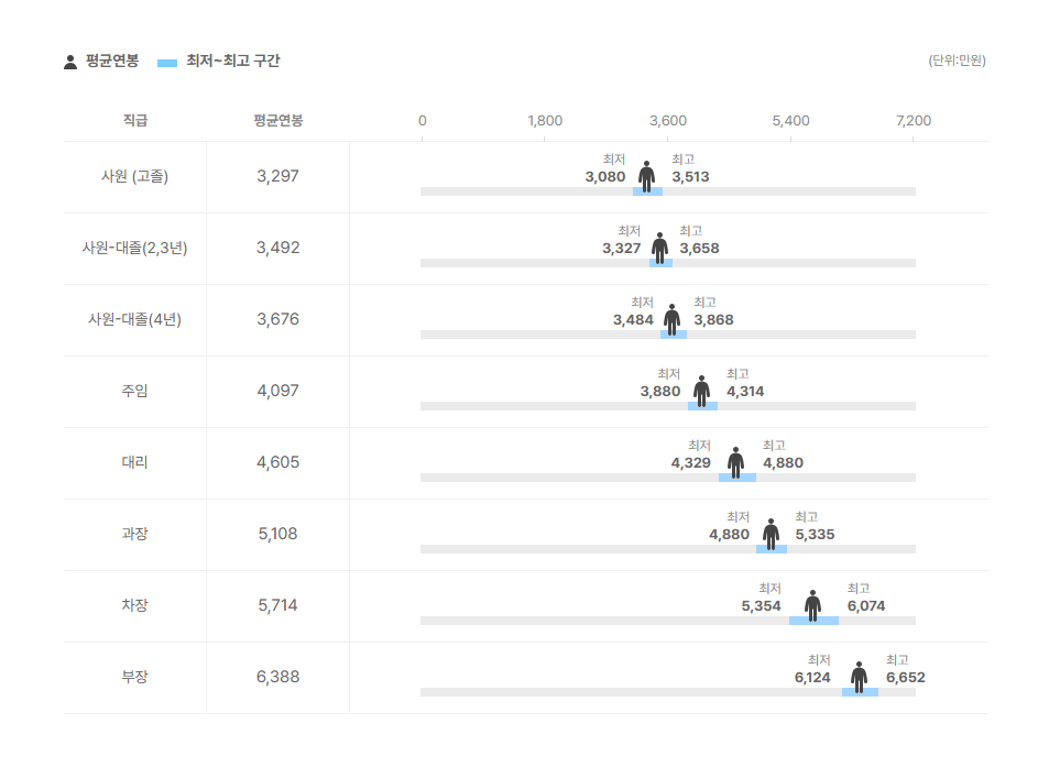 직급별 연봉 정보도 확인을 해보았는데요.