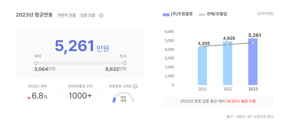 두원물류 연봉, 초봉 정보