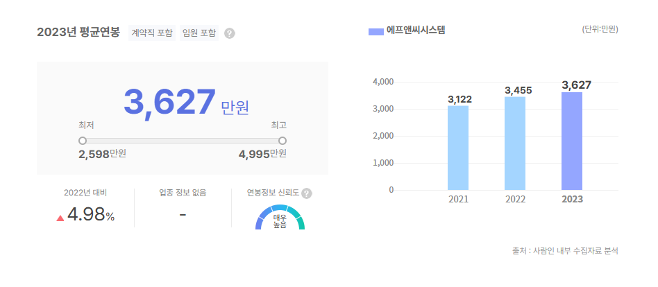에프앤씨시스템 직급별 연봉 (부장, 차장, 과장, 대리, 신입)