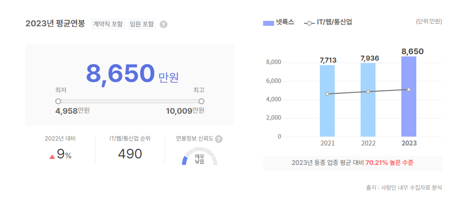 또한, 2022년 기준 전체 평균연봉은 8,650만원으로 이라고 하니 참고해주시기 바랍니다.