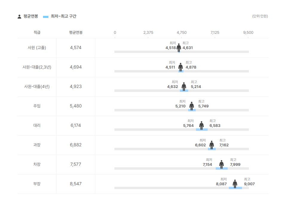 직급별 연봉 정보도 확인을 해보았는데요.