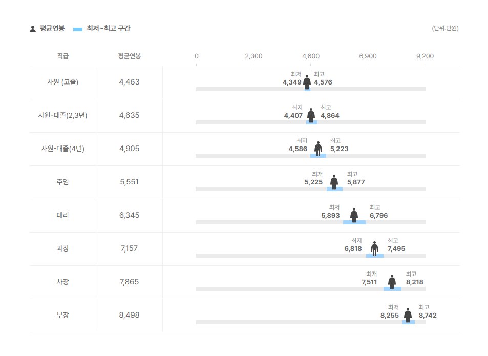 직급별 연봉 정보도 확인을 해보았는데요.