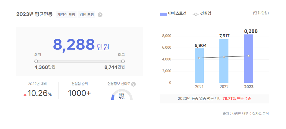 야베스토건 대졸초임 초봉을 확인해보니 4,743만원으로 확인되었습니다.