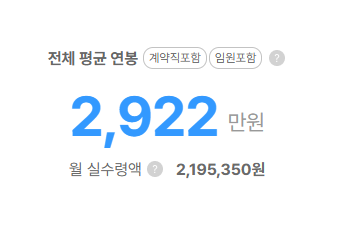 또한, 2022년 기준 전체 평균연봉은 2,922만원으로 이라고 하니 참고해주시기 바랍니다.