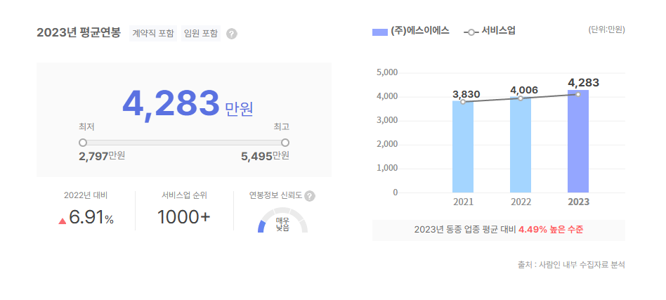 또한, 2022년 기준 전체 평균연봉은 4,283만원으로 이라고 하니 참고해주시기 바랍니다.
