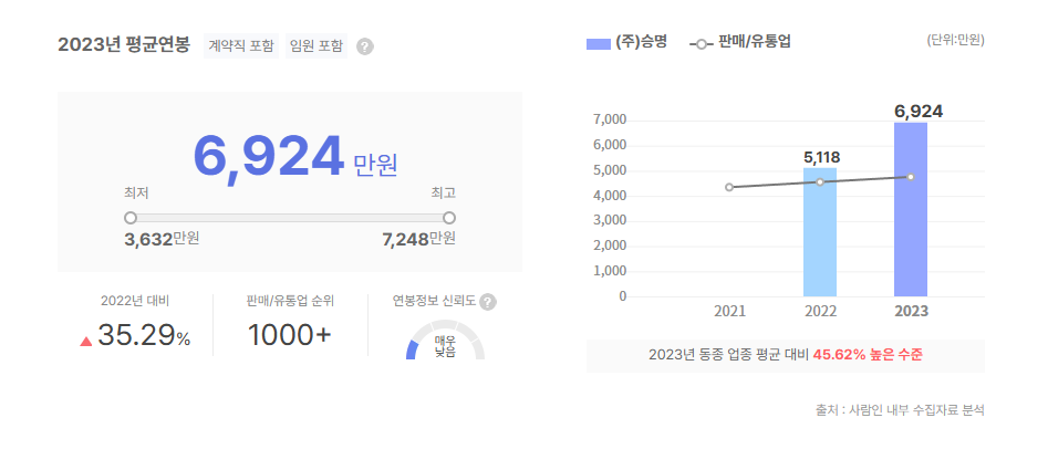 승명 연봉, 초봉 정보