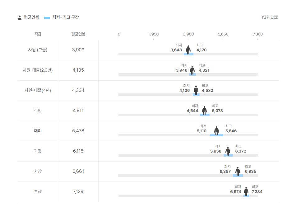 직급별 연봉 정보도 확인을 해보았는데요.