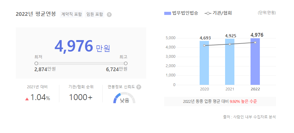 또한, 2022년 기준 전체 평균연봉은 4,976만원으로 이라고 하니 참고해주시기 바랍니다.