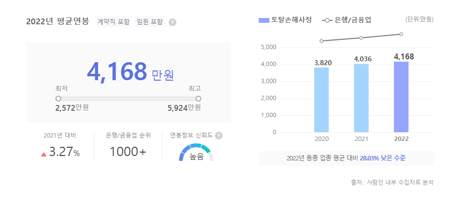 또한, 2022년 기준 전체 평균연봉은 4,168만원으로 이라고 하니 참고해주시기 바랍니다.