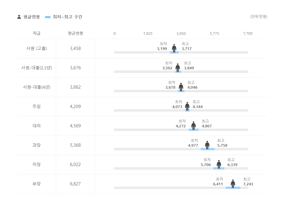 직급별 연봉 정보도 확인을 해보았는데요.