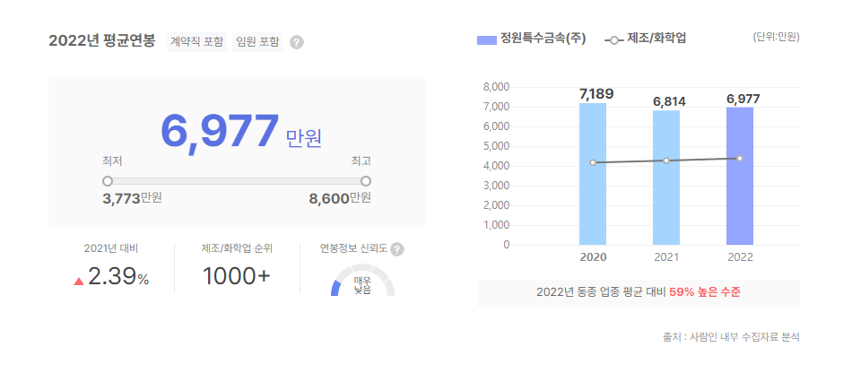 또한, 2022년 기준 전체 평균연봉은 6,977만원으로 이라고 하니 참고해주시기 바랍니다.