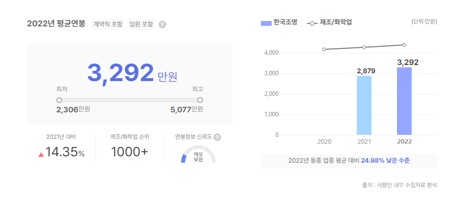 한국조명 대졸초임 초봉을 확인해보니 2,762만원으로 확인되었습니다.