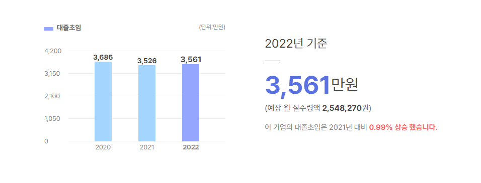 또한, 2022년 기준 전체 평균연봉은 5,143만원으로 이라고 하니 참고해주시기 바랍니다.