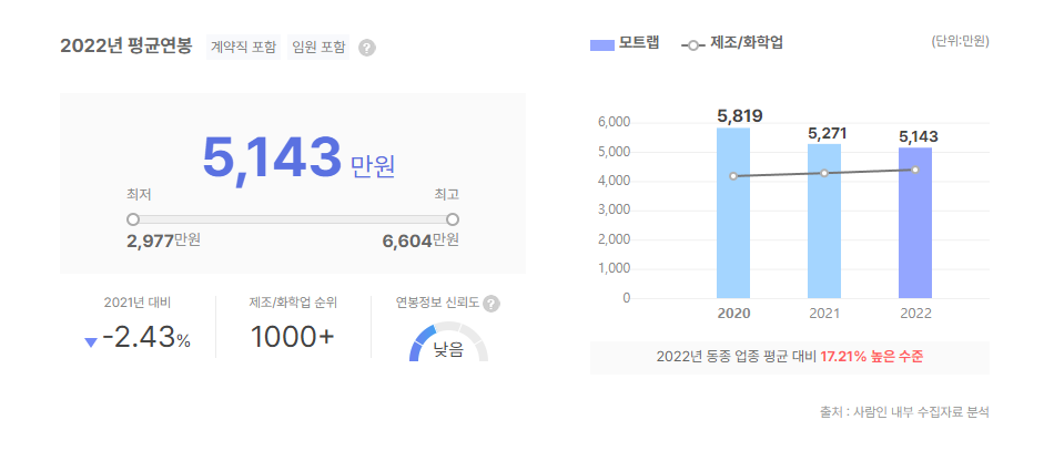 모트랩 대졸초임 초봉을 확인해보니 3,561만원으로 확인되었습니다.