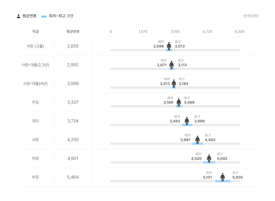 부장 연봉 5,464만원, 차장 연봉 4,801만원, 과장 연봉 4,250만원, 대리 연봉 3,734만원 이라고 합니다.