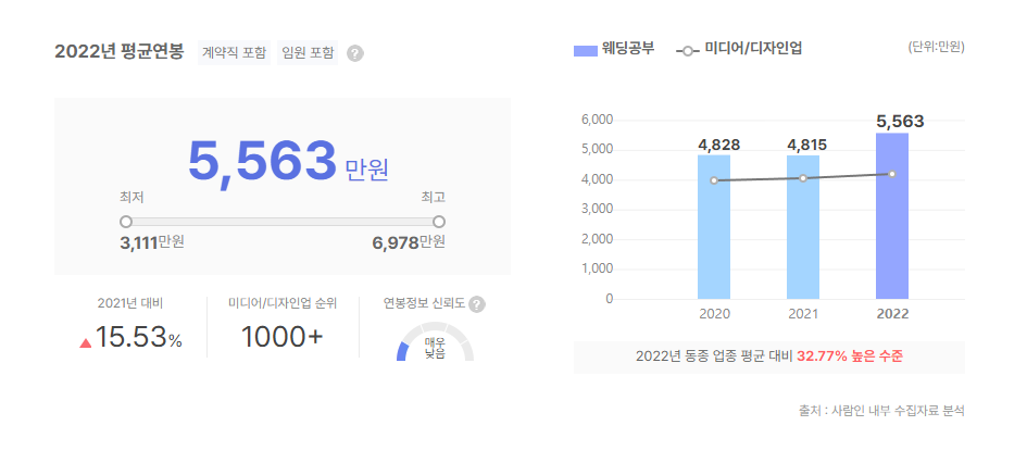 웨딩공부 대졸초임 초봉을 확인해보니 3,693만원으로 확인되었습니다.