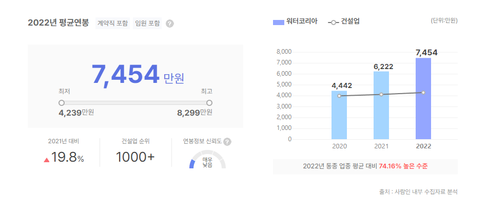 워터코리아 대졸초임 초봉을 확인해보니 4,514만원으로 확인되었습니다.