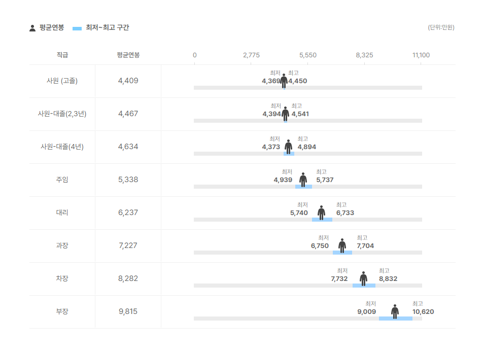 직급별 연봉 정보도 확인을 해보았는데요.