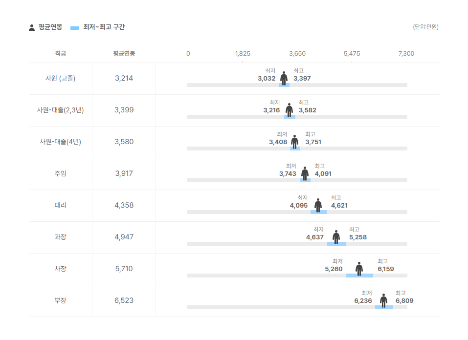 부장 연봉 6,523만원, 차장 연봉 5,710만원, 과장 연봉 4,947만원, 대리 연봉 4,358만원 이라고 합니다.
