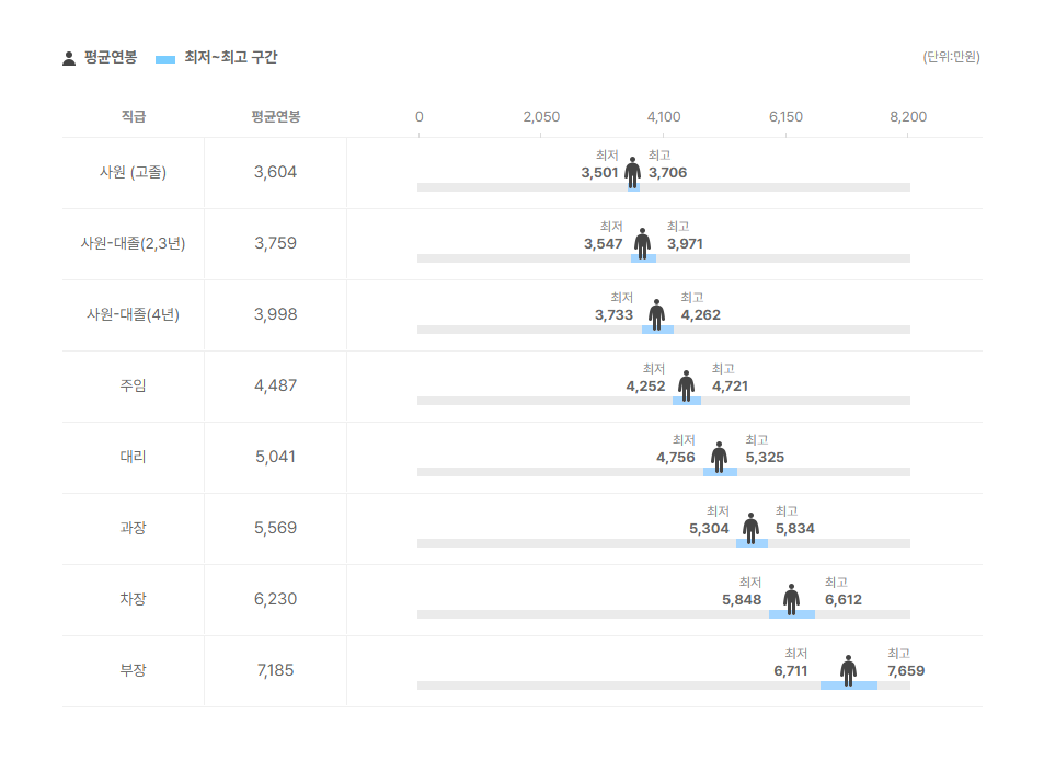 직급별 연봉 정보도 확인을 해보았는데요.