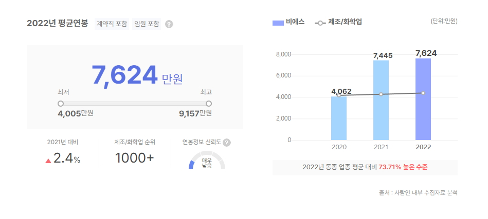 비에스 대졸초임 초봉을 확인해보니 4,575만원으로 확인되었습니다.
