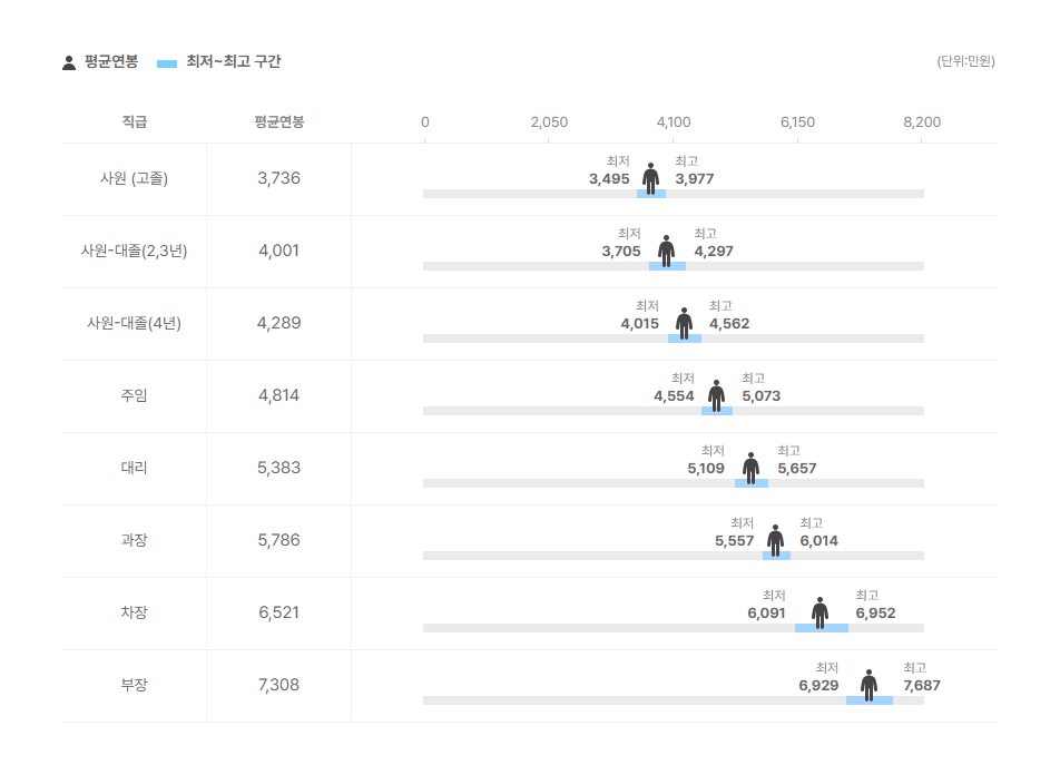 직급별 연봉 정보도 확인을 해보았는데요.