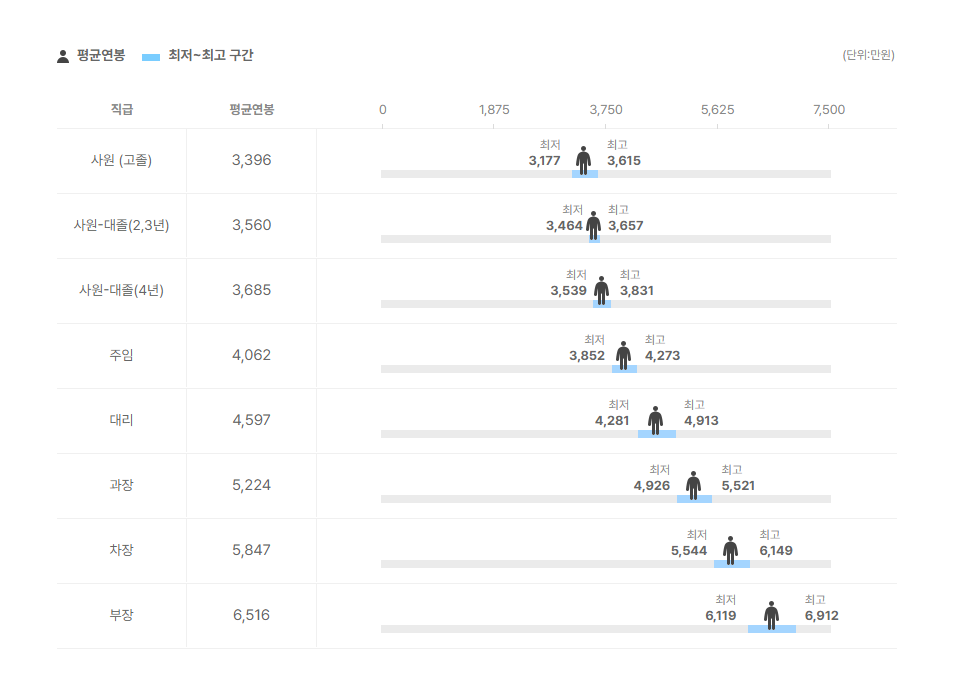 직급별 연봉 정보도 확인을 해보았는데요.