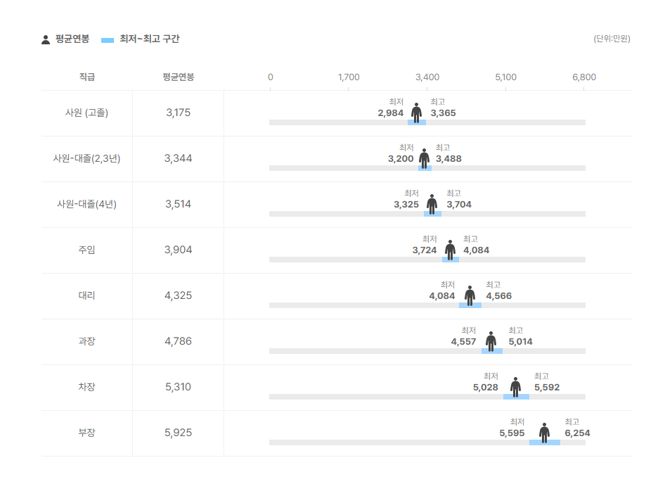 부장 연봉 5,925만원, 차장 연봉 5,310만원, 과장 연봉 4,786만원, 대리 연봉 4,325만원 이라고 합니다.