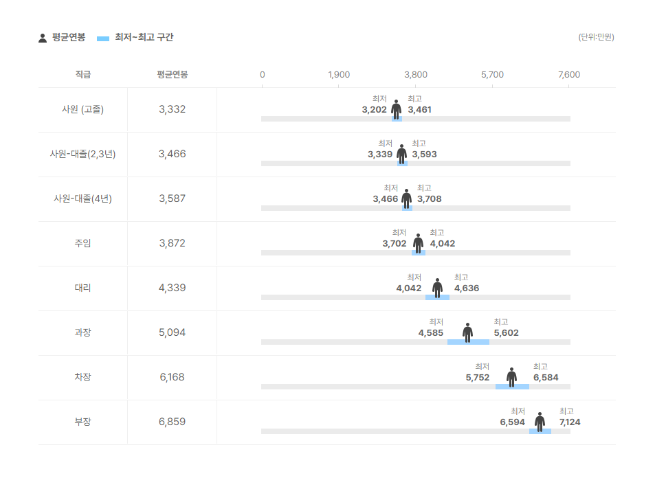 직급별 연봉 정보도 확인을 해보았는데요.