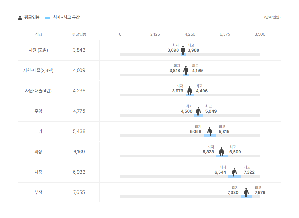 직급별 연봉 정보도 확인을 해보았는데요.